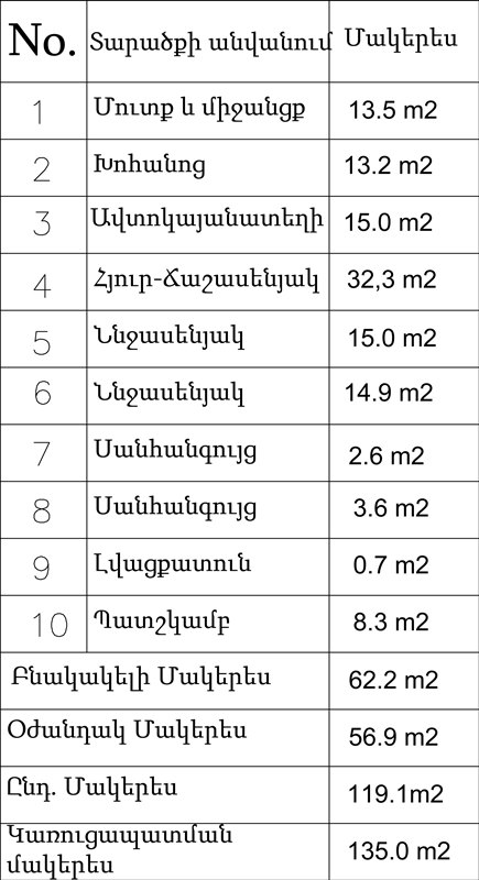 Թաղամասը ամբողջությամբ պարսպապատված է, ունի շուրջօրյա պահակություն և կանաչապատված է բազմաթիվ ծառերով: Այն ապահովված է ջրով, գազով, հոսանքով և կոյուղագծով: Յուրաքանչյուր բնակարան ունի սեփական հողամաս: Բնակարանները հանձնվում են ամբողջությամբ ավրտված վիճակում: Թաղամասի առաջին և երկրորդ փուլերի աշխատանքները ավարտված և բնակեցված են: Այժմ հնարավոր է ձեռք բերել 3րդ փուլի առնձնատները որոնք կառուցվում են չորս տարբեր նախագծերով: